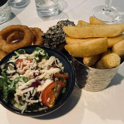 The fillet steak that followed was melt-in-your-mouth and garlicy enough to ward off any vampires in the building. It came with the chunkiest of chips, a mushroom sauce, beer battered onion rings, and a refreshing salad. Meanwhile, the vegan Moving Mountains burger was substantially filling and exceptionally juicy. I’d go as far to say it was the best vegan burger I’ve come across yet. The burger was topped with vegan mature cheese, crispy onions, pickle and peppers, and it came with a side of very nice fries.